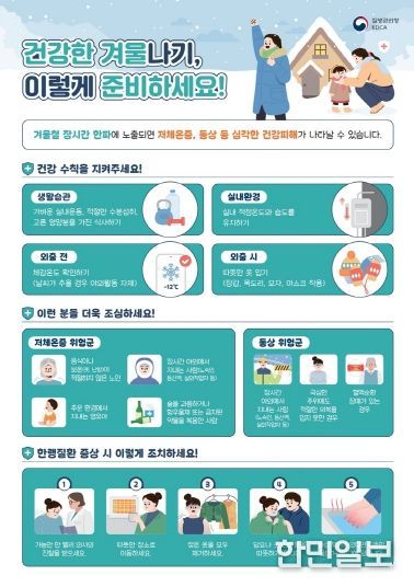 특히, 일반 성인에 비해 체온을 유지하는 기능이 약한 어르신과 어린이는 한파 시 야외 활동을 자제하고 외출 시 보온을 철저히 해야하며, 만성질환자는 급격한 온도변화에 혈압이 상승하고 증상이 악화될 우려가 있으므로 무리한 신체활동은 피하는 것이 좋다.