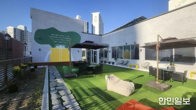 산본도서관(군포시 광정로 96) 3층 옥상(168㎡)은 기존 유휴 공간을 활용해 야외 테이블 세트, 인조잔디, 목재 데크, 소규모 정원, 빈백 등 편안한 휴게시설을 갖춘 복합 힐링 공간으로 재정비됐다. 청소년을 비롯한 시민 누구나 편안하게 머물며 휴식하고 소통할 수 있는 도심 속 쉼터로 거듭난 것이다.