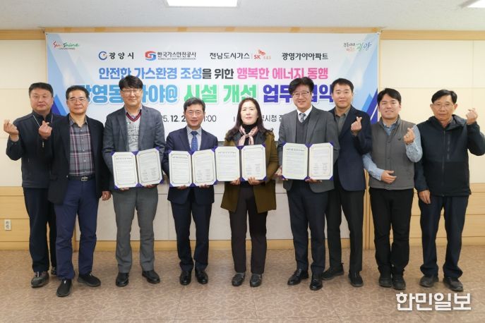 한민일보 서울포커스 임광현 기자 | 광양시는 3일 한국가스안전공사 전남동부지사, 전남도시가스(주), 광영 가야아파트와 함께 ‘광영동 가야아파트 시설개선’을 위한 업무협약을 체결했다고 밝혔다.