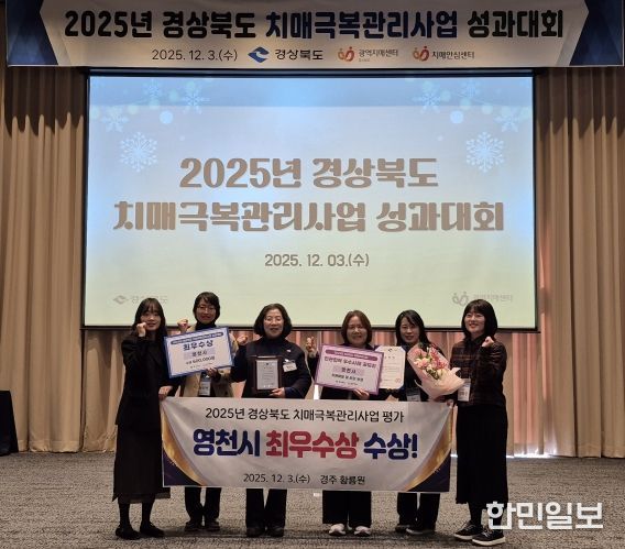 한민일보 서울포커스 김봉순 기자 | 영천시는 3일 경주 황룡원에서 열린 ‘2025년 경상북도 치매극복관리사업 성과대회’에서 치매극복관리사업 평가 ‘최우수상’과 민관협력 우수사례 공모전 수상이라는 성과를 함께 거두며 2관왕에 올랐다.