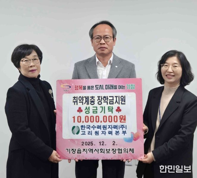 한민일보 서울포커스 임광현 기자 | 기장군 행정복지센터는 지난 2일 ㈜한국수력원자력 고리원자력본부, 기장읍 지역사회보장협의체(민간위원장 권묘연)와 함께 지역 내 취약계층 학생을 위한 장학금 기탁식을 개최했다고 3일 밝혔다.