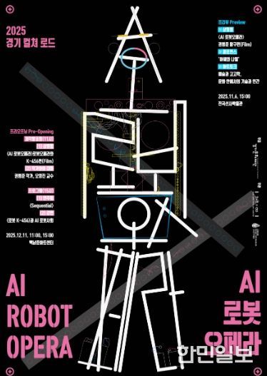 한민일보 서울포커스 김윤이 기자 | 경기문화재단 백남준아트센터는 12월 11일 백남준아트센터 랜덤엑세스홀에서 2025 경기 컬쳐 로드 〈AI 로봇오페라(Robot Opera)〉 프리오프닝(Pre-Opening)을 개최한다. 이번 행사는 내년 백남준 서거 20주기를 앞두고 시범적으로 추진되는 ‘AI 로봇 오페라 프로젝트’의 일환으로, 〈로봇 K-456〉을 통해 1964년 《로봇오페라》 퍼포먼스에서 보여준 기술과 예술의 만남을 현대적으로 재해석해 백남준의 정신을 잇고자하는 취지로 기획됐다.