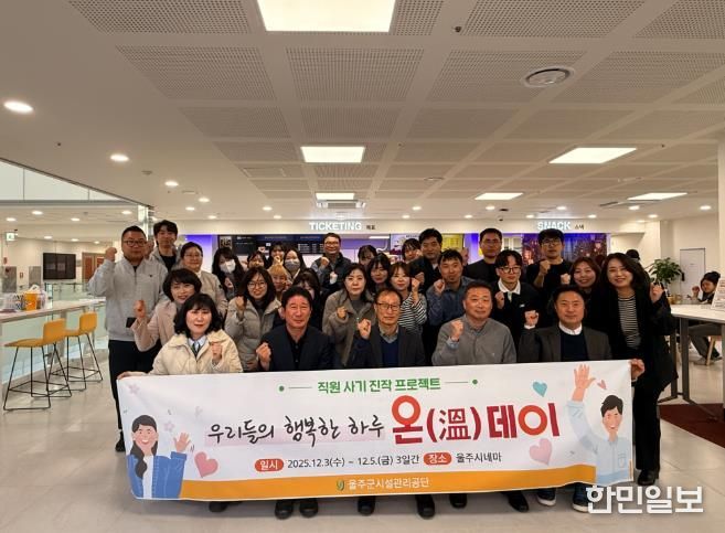 한민일보 서울포커스 기자 | 울주군시설관리공단은 오는 12월 3일부터 5일까지 3일간 전 직원을 대상으로 한 ‘우리들의 행복한 하루'온(溫) 데이'’프로그램을 운영한다고 밝혔다.