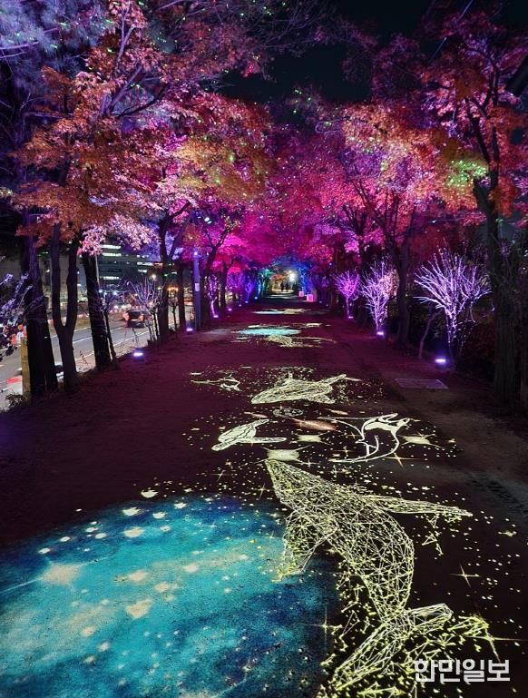 설치된 조명은 △가을 단풍잎이 흩날리는 ‘단풍길’ △연잎 위를 걷는 듯한 ‘물 위를 걷다’ △화사한 개나리가 수놓인 ‘개나리 꽃길’ △푸른 물결 속 고래가 유영하는 ‘밤하늘을 유영하는 고래’ 등 총 4가지 주제(테마)로 꾸며져 다양한 분위기를 즐길 수 있다.