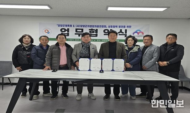 한민일보 서울포커스 진광성 기자 | 양양군체육회와 (사)양양군자영업자총연합회는 지난 12월 3일에 지역 경제와 체육의 상호 시너지 효과를 높이기 위한 업무협약을 체결했다.