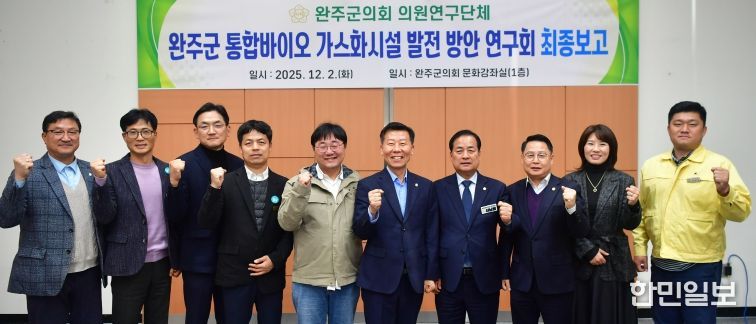 한민일보 서울포커스 박용남 기자 | 완주군의회 통합바이오가스화시설 발전 방안 연구회는 지난 2일 의회 문화강좌실에서 ‘완주군 통합 바이오가스화시설 발전 방안 연구’ 최종보고회를 열고 연구 성과를 종합적으로 점검했다.