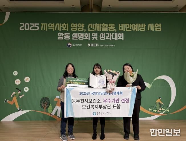 한민일보 서울포커스 임경복 기자 | 동두천시보건소는 지난 2일 열린 지역사회 영양·신체활동·비만예방 사업 합동 성과대회에서 ‘2025년 국민영양관리시행계획 평가’ 우수기관으로 선정돼 보건복지부 장관 표창과 포상금 100만 원을 받았다.