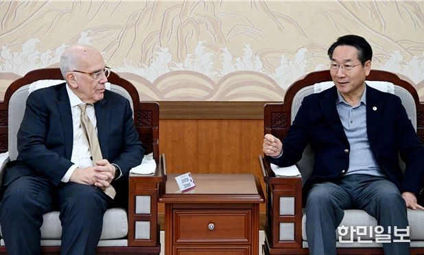 한민일보 서울포커스 유창렬 기자 | 유정복 인천시장은 12월 3일 오후 인천시청 접견실에서 세계 최고 수준의 의과·바이오 연구 중심 대학인 존스홉킨스대의 조나단 슈넥(Jonathan schneck) 의과대학 교수(왼쪽) 일행을 접견했다.