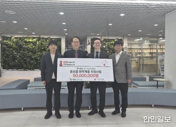 한민일보 서울포커스 기자 | S-OIL 울산공장이 5일 울주군 온산읍 행정복지센터에서 이준호 온산읍장, 박성훈 S-OIL 상무, 박광철 온산읍 지역사회보장협의체 위원장, 양호영 울산사회복지공동모금회 사무처장 등이 참석한 가운데 온산읍 취약계층 지원금 5천만원을 전달했다.