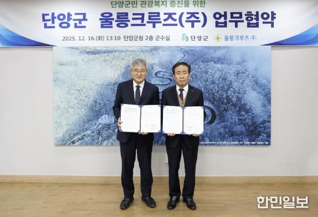 한민일보 서울포커스 김다남 기자 | 충북 단양군은 지난 16일 울릉크루즈(주)와 업무협약(MOU)을 체결하고, 군민을 대상으로 한 울릉도 여행 요금 할인 혜택을 추진한다고 밝혔다.