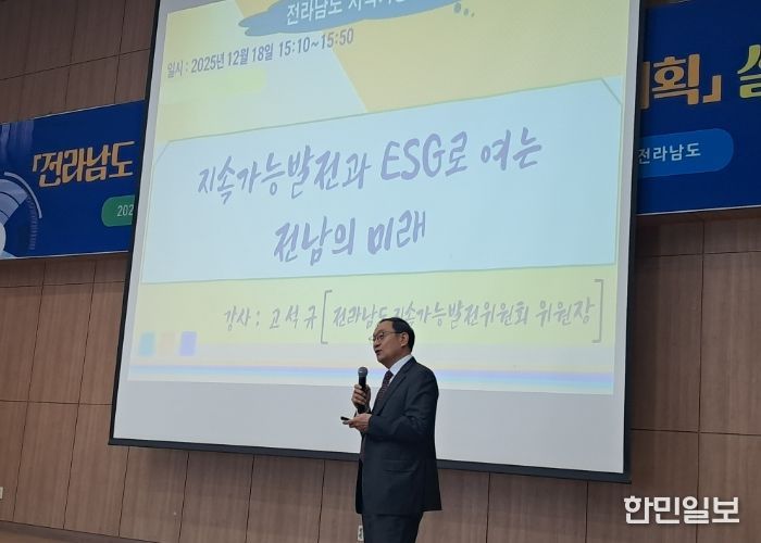 첫번째 강연자로 나선 고석규 전남도 지속가능발전위원장은 ‘지속가능발전과 ESG로 여는 전남의 미래’를 주제로 지속가능발전의 의미와 함께 전남도가 앞으로 나아가야 할 방향을 제시했다. 이어‘전라남도 지속가능발전 기본전략 및 추진계획’의 주요 내용과 추진체계에 대한 구체적 이해를 높이기 위한 전략 수립 배경, 향후 5년과 20년을 내다보는 중·장기 추진 과제 등을 소개했다.