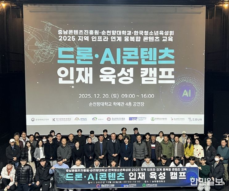 한민일보 서울포커스 박덕환 기자 | 충남콘텐츠진흥원은 순천향대학교, 한국청소년육성회와 함께 추진한 ‘드론·AI 콘텐츠 인재 육성 캠프’를 성공적으로 마무리했다고 밝혔다.
