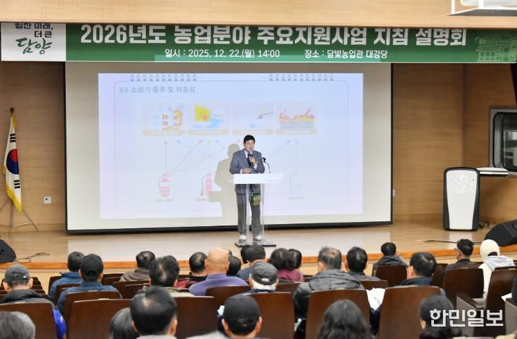 한민일보 서울포커스 임경복 기자 | 담양군은 지난 22일 담빛농업관 대강당에서 관내 농업인을 대상으로 ‘2026년도 농업 분야 주요 지원사업 지침설명회’를 열고, 농업 분야 보조사업 전반에 대한 추진 방향과 세부 내용을 안내했다.