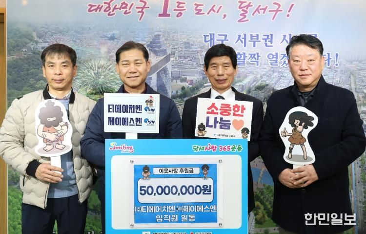 한민일보 서울포커스 임경복 기자 | 대구 달서구는 ㈜티에이치엔과 ㈜제이에스엔(대표 이광연, 채승훈)으로부터 이웃사랑 후원금 5,000만 원을 기탁받았다고 23일 밝혔다.