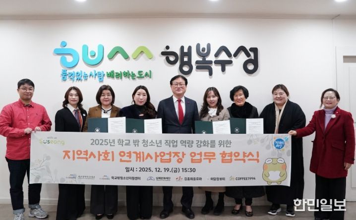 수성구는 이번 협약을 계기로 지역사회 기관과의 연계를 강화해 학교밖청소년들의 사회적 고립을 예방하고, 안정적인 사회 진입을 적극 지원할 계획이다.