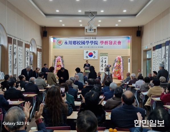 한민일보 서울포커스 김봉순 기자 | 영천향교 국학학원(원장 이덕기)은 지난 23일 본원 3층 대강당에서 관내 단체장과 수강생 등 200여 명이 참석한 가운데 ‘2025년 정기 학예발표회’를 성황리에 개최했다.