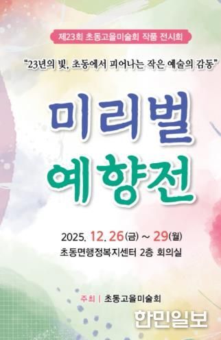 김영근 초동면장은 “미리벌 예향전은 예술이 특정 공간에 머무르지 않고, 지역과 일상 속으로 스며드는 뜻깊은 전시다”라며 “이번 전시를 통해 지역 주민들이 예술의 따뜻한 울림을 가까이에서 느끼고, 초동면이 문화와 예술이 살아 숨 쉬는 고장임을 함께 공감하는 시간이 되길 바란다”라고 전했다.