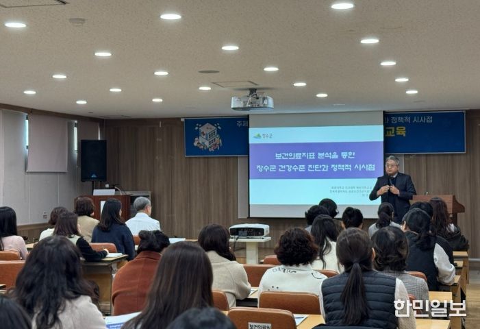 한민일보 서울포커스 김용택 기자 | 장수군은 보건의료원 4층 대회의실에서 보건의료 정책 수립 역량 강화를 위해 보건의료원 직원을 대상으로 ‘보건의료지표 분석을 통한 장수군 건강수준 진단과 정책적 시사점’을 주제로 한 역량강화 교육을 실시했다고 26일 밝혔다.