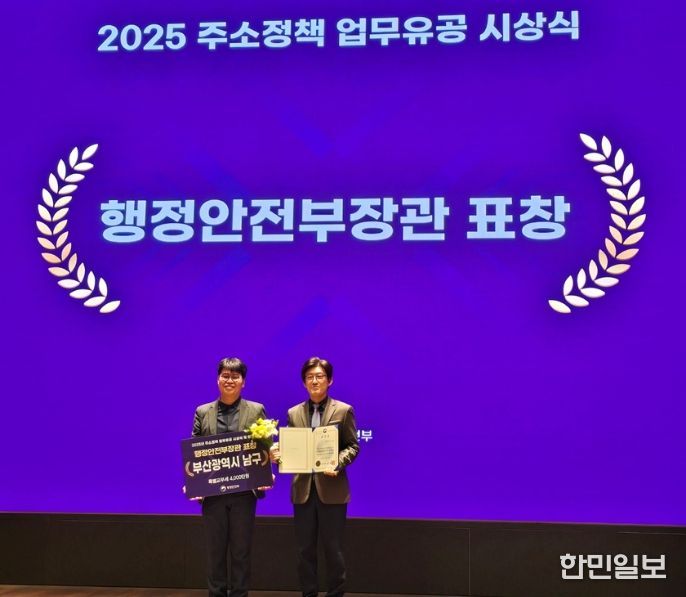 한민일보 서울포커스 임광현 기자 | 부산광역시 남구는 행정안전부가 주관한 ‘2025년 주소정책 업무 유공’ 분야에서 우수 기관으로 선정돼 행정안전부 장관 표창을 수상하고, 특별교부세 4천만 원을 확보했다고 밝혔다.