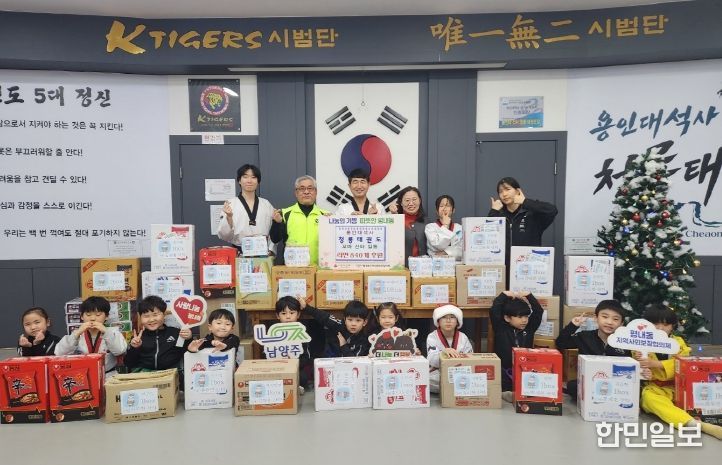 한민일보 서울포커스 김성윤 기자 | 남양주시는 지난 24일 크리스마스를 맞아 평내동에 위치한 용인대석사 청룡태권도(관장 박환균) 원생들이 ‘꼬마 산타’로 등장해 소중한 마음이 담긴 라면 840개를 기부했다고 밝혔다.
