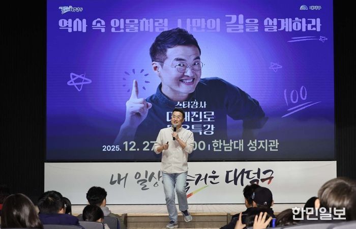 한민일보 서울포커스 임경복 기자 | 대전 대덕구는 지난 27일 한남대학교 성지관에서 한국사 스타강사 최태성 씨를 초청해 ‘미래진로 교육특강’을 성황리에 마무리했다.