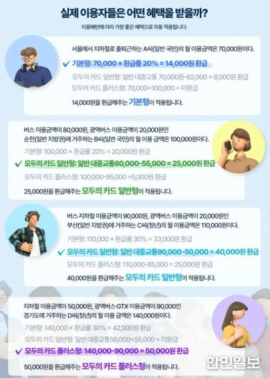 모두의 카드가 시행됨에 따라 한 달 동안 환급 기준금액을 초과해 대중교통비를 지출한 경우 초과분에 대해 모두 돌려받을 수 있다.