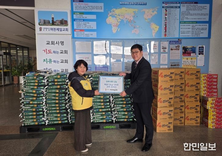 안순금 여천동장은 “매년 지역사회를 위해 따뜻한 나눔을 실천해주시는 여천제일교회 목사님과 교인들께 깊이 감사드린다”며 “전달해주신 물품은 도움이 필요한 이웃들에게 정성껏 전달하겠다”고 말했다.