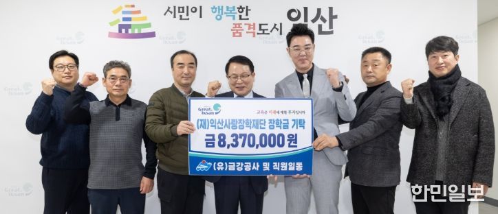 익산시 향토기업인 금강공사(대표이사 최은규)는 6일 시청을 방문해 (재)익산사랑장학재단에 장학금 837만 원을 기탁했다.