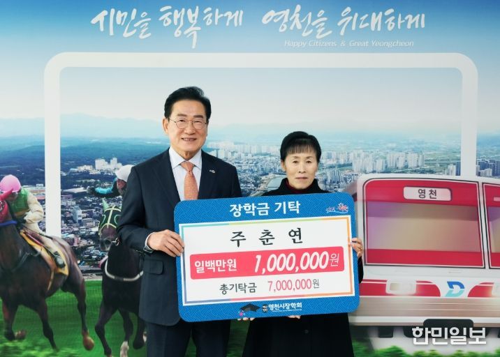 한민일보 서울포커스 김봉순 기자 | 영천시는 6일 주춘연 씨가 100만원, ㈜정우산업(대표 최종영)이 500만원, 덕유농장(대표 김금필)이 300만원, ㈜디에스건설안전이 200만원의 장학금을 영천시장학회에 기탁했다고 밝혔다.