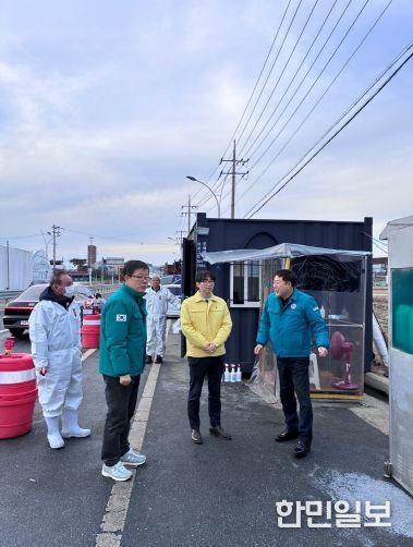 한민일보 서울포커스 박용남 기자 | 이현서 김제시 부시장이 6일 고병원성 AI 전국 가금농장 30건 발생 상황에서 가축전염병 차단방역을 위해 운영 중인 거점 소독시설 및 환적장 등 가축 방역 현장을 방문했다