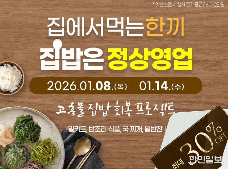 한민일보 서울포커스 임광현 기자 | 고흥군이 운영하는 온라인 농수축특산물 쇼핑몰 ‘고흥몰’이 가정 내 식사를 보다 간편하고 실속 있게 즐길 수 있도록 돕기 위해 집밥 중심 기획전을 운영한다.