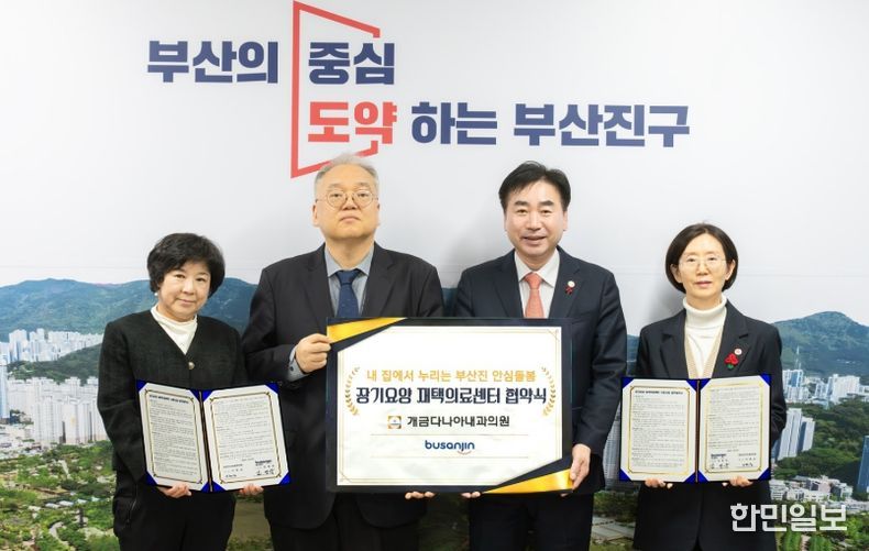 한민일보 서울포커스 임광현 기자 | 부산진구는 지난 8일, 개금다나아내과의원(원장 이현승)과 '장기요양 재택의료센터 시범사업'관련 업무협약을 체결했다.