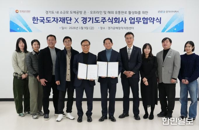 한민일보 서울포커스 김윤이 기자 | 한국도자재단과 경기도주식회사가 9일 경기공예창작지원센터에서 ‘경기도 소규모 도예공방의 유통판로 활성화’를 위한 업무협약을 체결했다.