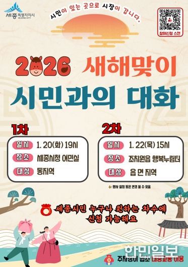 한민일보 서울포커스 김윤이 기자 | 최민호 세종특별자치시장이 2026년 새해를 맞아 시민들의 목소리에 귀를 기울이고 시정 운영방향을 공유하기 위해 ‘새해맞이 시민과의 대화’를 개최한다.
