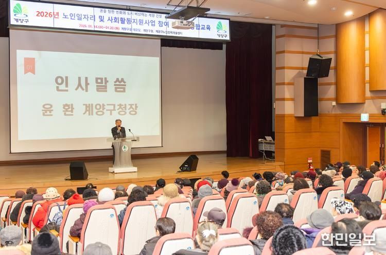 한민일보 서울포커스 김성혜 기자 | 인천광역시 계양구는 계양구노인인력개발센터 주관으로 2026년 노인 일자리 및 사회활동지원사업 참여 어르신 2,800여 명을 대상으로, 1월 14일부터 20일까지 구청 대강당에서 안전 및 직무 통합 교육을 실시한다.