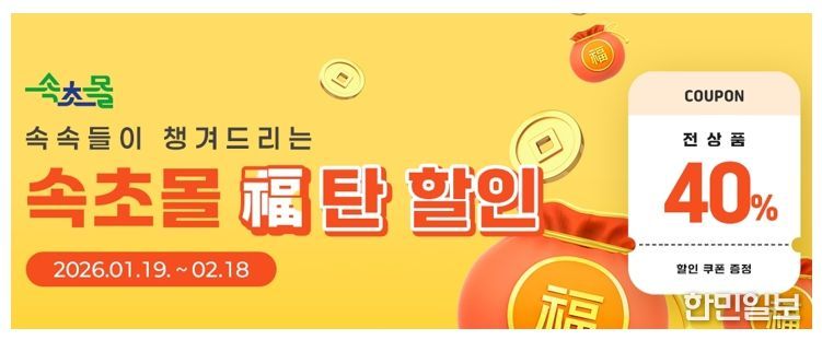 한민일보 서울포커스 임경복 기자 | 속초시 대표 온라인 쇼핑몰 ‘속초몰’이 설 명절을 맞아 고객 감사 이벤트로 전 상품 40% 할인쿠폰 발급 행사를 운영한다.