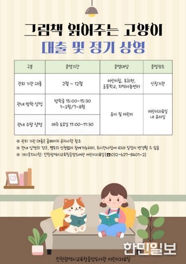 한민일보 서울포커스 유창렬 기자 | 인천광역시교육청중앙도서관은 그림책 스트리밍 서비스'그림책 읽어주는 고양이'를 2월부터 관내 희망 기관에 대출한다