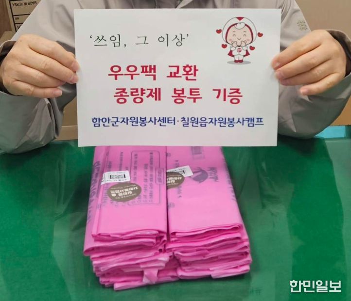 한민일보 서울포커스 김서윤 기자 | 함안군은 칠원읍자원봉사캠프가 우유팩 수거 활동으로 마련한 종량제봉투 약 1000매를 지난 15일 함안군외국인주민통합지원센터와 지역아동센터, 차상위계층 가정 등에 전달했다고 밝혔다.