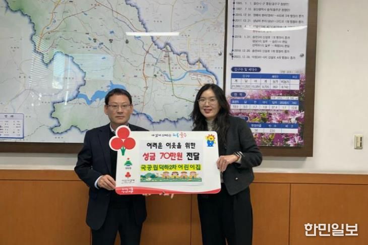 한민일보 서울포커스 기자 | 울주군 청량읍 소재 국공립 덕하2차 어린이집이 21일 청량읍 행정복지센터에 지역 내 어려운 이웃을 돕기 위한 성금 70만원을 전달했다.