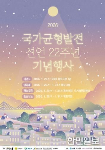 한민일보 서울포커스 임광현 기자 | 목포시는 노무현재단, 전라남도와 함께 국가균형발전선언 22주년을 맞아 1월 29일부터 31일까지 3일간 목포극장과 오거리문화센터 일원에서 ‘국가균형발전선언 22주년 기념행사’를 개최한다고 밝혔다.