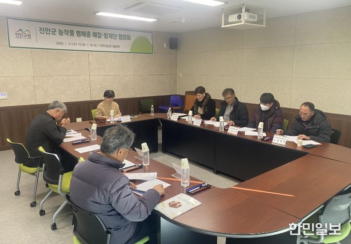 한민일보 서울포커스 박용남 기자 | 진안군은 지난 21일 관내 사과영농조합, 작목반, 토마토 공선회 등 농업인 단체 대표 10여명이 참석한 가운데 농작물 병해충 예찰ㆍ방제단 협의회를 가졌다.