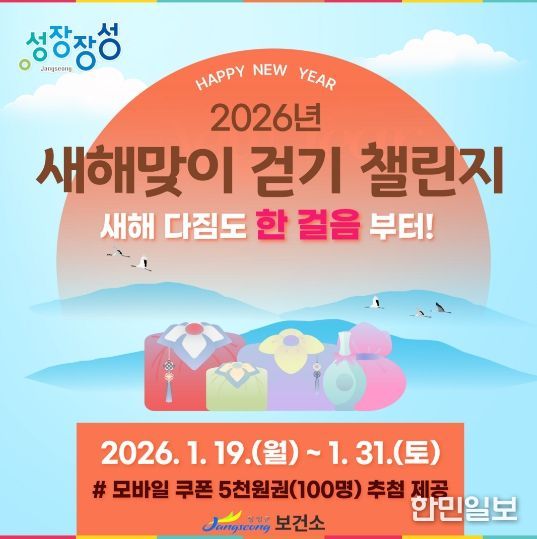 한민일보 서울포커스 박용남 기자 | 장성군이 새해맞이 ‘걷기 챌린지’를 운영 중이다. 이달 31일까지 진행되며 스마트폰이 있는 주민이라면 누구나 참여할 수 있다.