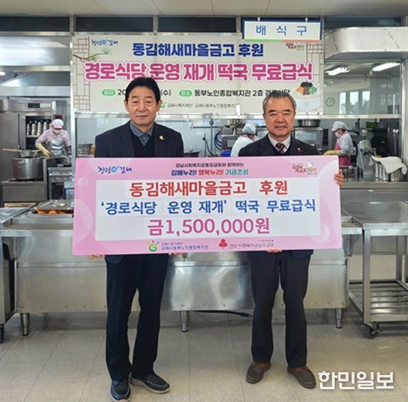 이날 전달식에는 동김해새마을금고 이강은 이사장, 김해시복지재단 임주택 대표이사 및 관계자 등이 참석해 김해시동부노인종합복지관 경로식당 리모델링 공사 완료 복지관 운영 재개를 위한 떡국 무료급식 후원으로 이용 어르신들의 건강한 일상을 응원했다고 전했다.