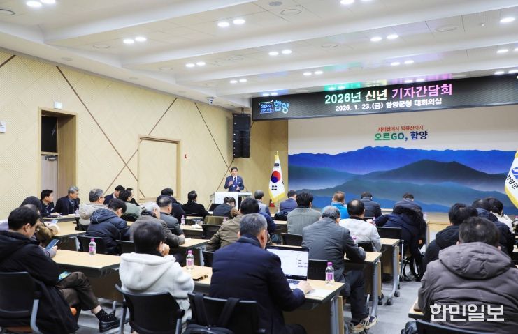 한민일보 서울포커스 김서윤 기자 | 함양군은 1월 23일 군청 대회의실에서 ‘2026년 출입기자 신년간담회’를 열고, 민선 8기 군정의 주요 정책 추진 현황과 함께 ‘천년의 숲, 새로운 백년’을 주제로 한 2026년 군정 운영 방향을 설명했다.