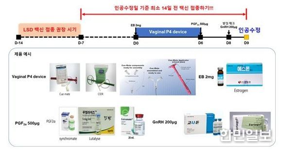 이에 따라 연구진은 럼피스킨 백신 접종 시 인공수정일 기준 최소 14일 이전에 접종하고, 반드시 목 부위 피하층에 정확한 피하접종을 시행할 것을 현장에 권고했다.