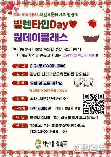 한민일보 서울포커스 임경복 기자 | 충청북도 청남대관리사업소는 다가오는 발렌타인데이를 맞아 어린이와 가족들이 함께 즐길 수 있는 특별한 체험의 장을 마련한다.