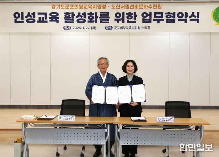한민일보 서울포커스 임경복 기자 | 경기도군포의왕교육지원청은 1월 27일, 도산서원선비문화수련원과 학생들의 바른 인성 함양과 사회정서 역량 강화를 위한 업무협약(MOU)을 체결했다.