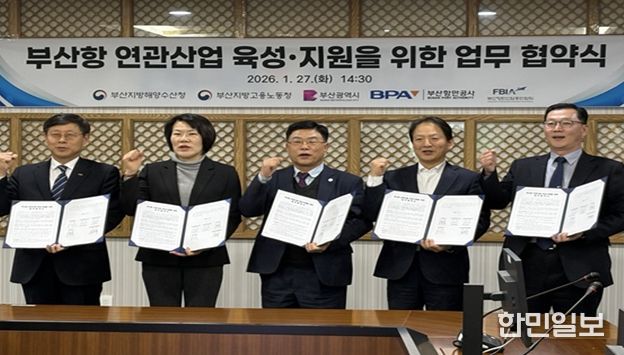 한민일보 서울포커스 임광현 기자 | 부산시는 27일 오후 2시 30분 부산항만공사 중회의실에서 부산지방해양수산청, 부산지방고용노동청, 부산항만공사, 부산항만산업총연합회와 '부산항 항만연관산업* 육성·지원을 위한 업무협약'을 체결했다고 밝혔다.