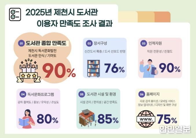 한민일보 서울포커스 김다남 기자 | 제천시립도서관이 지난 12월 도서관 이용자 365명을 대상으로 ‘2025년 제천시 도서관 이용자 만족도 조사’를 실시한 결과, 응답자의 90%가 도서관 전반의 서비스에 만족하는 것으로 나타났다.