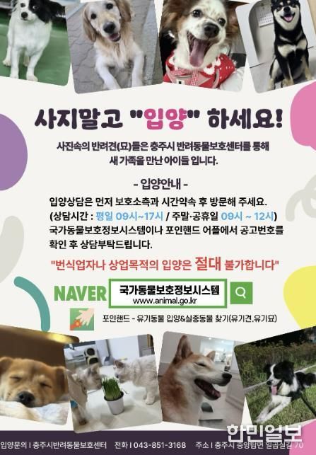 한민일보 서울포커스 김다남 기자 | 충주시는 반려동물보호센터에서 보호 중인 유실·유기동물의 장기체류와 안락사를 예방하고 입양을 활성화하기 위해 ‘입양비 지원사업’을 실시한다고 4일 밝혔다.